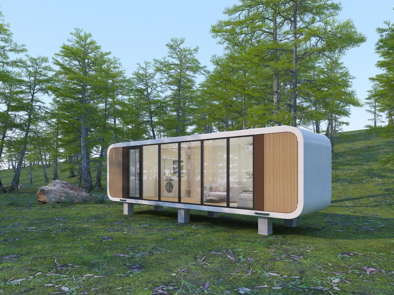 A sleek modular living pod designed for contemporary lifestyles. Panoramic glass, clean lines, and a smart interior layout create a bright, modern living experience ideal for residential and commercial use.