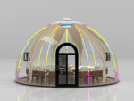 The Panorama Dome Capsule is a striking modular structure created to deliver a unique and immersive indoor experience. Its curved, transparent design allows natural light to flow freely while offering a visually impressive space that blends seamlessly with its surroundings.