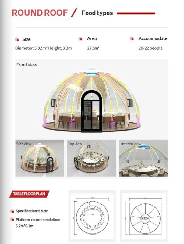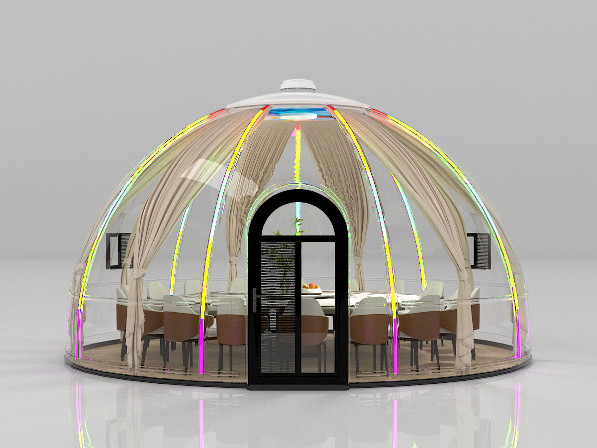 Designed for flexibility and quick installation, this dome capsule is perfect for outdoor dining areas, cafés, resorts, events, lounges, and experiential spaces. Fully enclosed and weather-resistant, it provides comfort, protection, and standout aesthetics in one elegant solution.