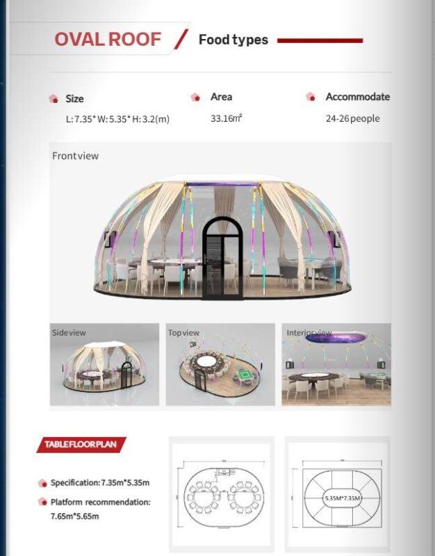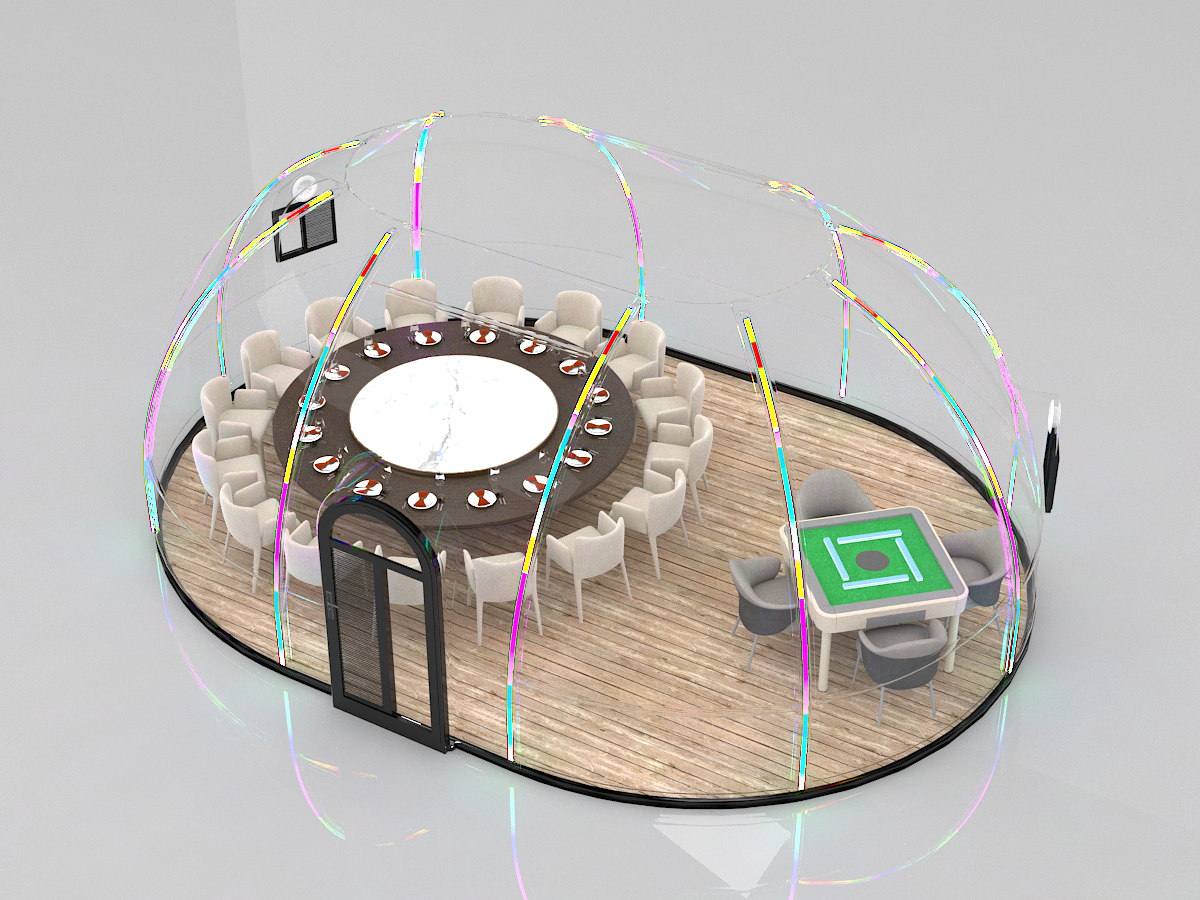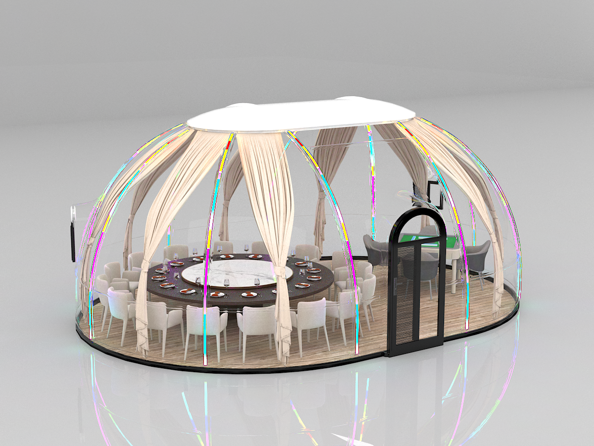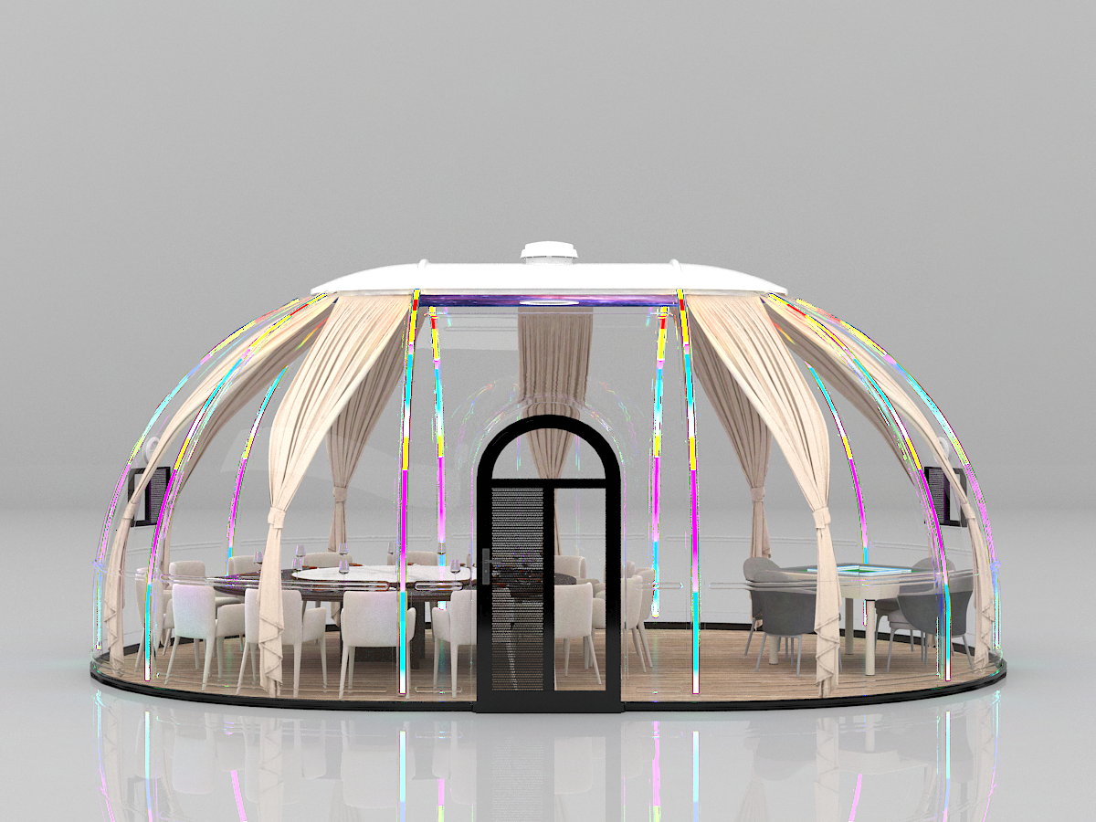 Designed for flexibility and quick installation, this dome capsule is perfect for outdoor dining areas, cafés, resorts, events, lounges, and experiential spaces. Fully enclosed and weather-resistant, it provides comfort, protection, and standout aesthetics in one elegant solution.